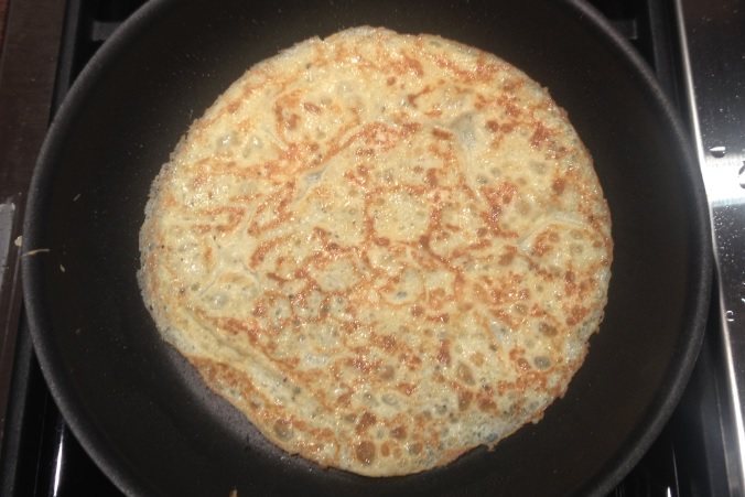 Mix first 4 ingredients very well. Spray a thin coat of coconut spray into a 10 inch NON STICK pan on medium-low heat. Drop just a tad under ¼ of a cup into your pan and swirl it around to cover the bottom. It’s going to look thin, it should, it’s a crepe. Cook for a few minutes longer than you think you should (3 min total) then lift a corner with a spatula. If it’s browned, scoot the crepe to the far of one side, slide your spatula under and flip it! Then heat for another 3 minutes (or until brown). You can stack them up as you go and heat them back up later.