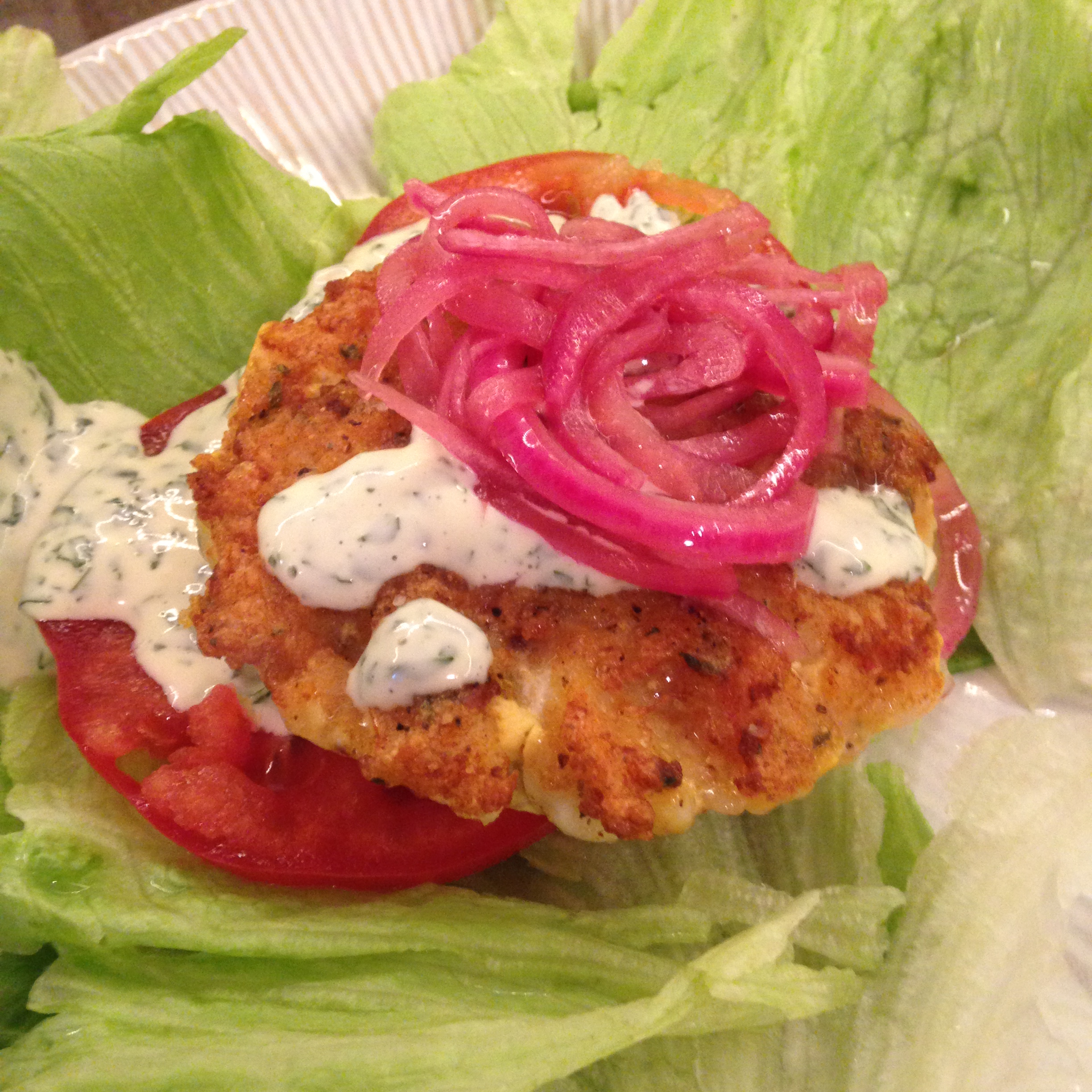 Garnish the burger with fresh tomato, basil mayo and pickled onions. I tried to wrap it in iceberg lettuce, which was great really because the crunch is exactly what you need. But apparently I need a trip to NorCal to learn how to wrap a burger in lettuce! It was kind of a mess. Next time I’ll use a knife and fork. Who really cares the method in which you get it in your mouth anyway!